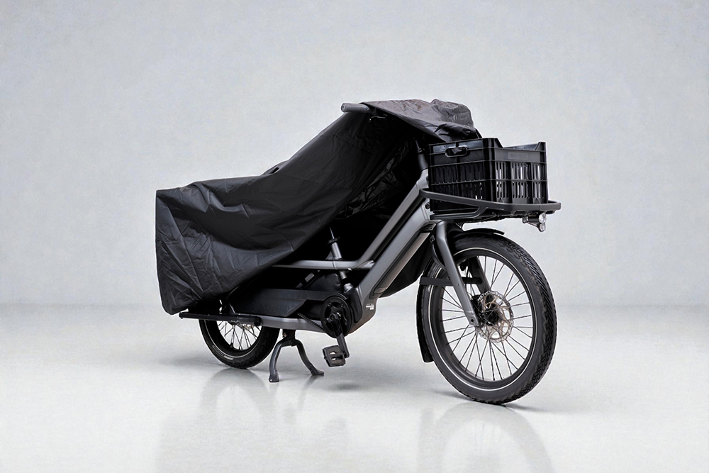 De CARGO LT bakfietshoes biedt betrouwbare bescherming voor uw longtail-bakfiets tegen onder andere regen, vorst en UV-straling. De hoes is vervaardigd uit sterk 300D polyester en dankzij de dubbelgestikte naden met watertape aan de binnenzijde volledig waterdicht. Door de elastische zoom en de geïntegreerde trekkoorden sluit de hoes mooi strak om iedere longtail-bike.