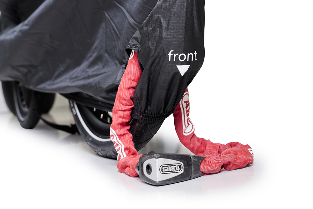 Dankzij de elastische zoom en verstelbare band met kliksluiting blijft de hoes stevig om de fiets zitten. De ringen in de zoom bieden daarnaast extra borgingsmogelijkheden, handig in situaties waarin je de hoes extra wilt vastzetten. Daarnaast beschikt de hoes over slotgaten, waardoor de fiets samen met de hoes op slot gezet kan worden.